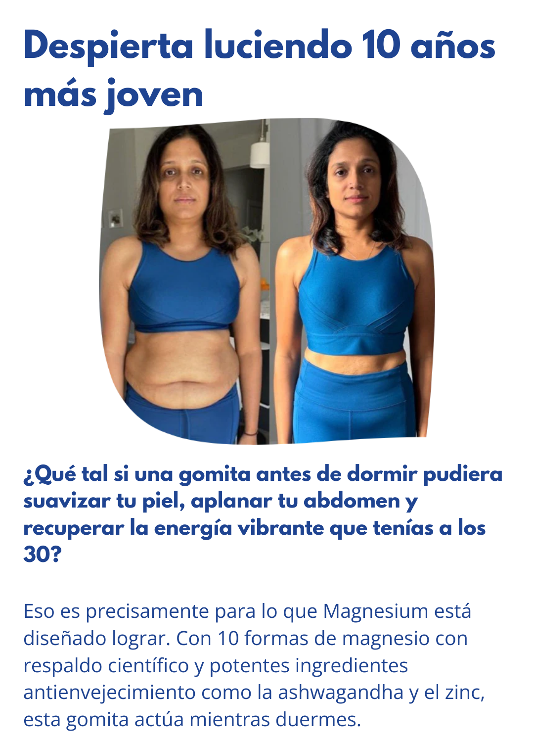 Magnesium™ combina las 10 formas esenciales de magnesio con nutrientes de respaldo científico, como vitamina D3, ashwagandha, L-teanina y zinc para cubrir todo, desde el sueño y la piel hasta las hormonas y la energía.
