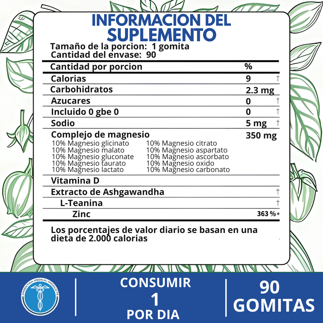 Solo 1 gomita al día es suficiente para cubrir tus necesidades de magnesio y nutrientes complementarios.