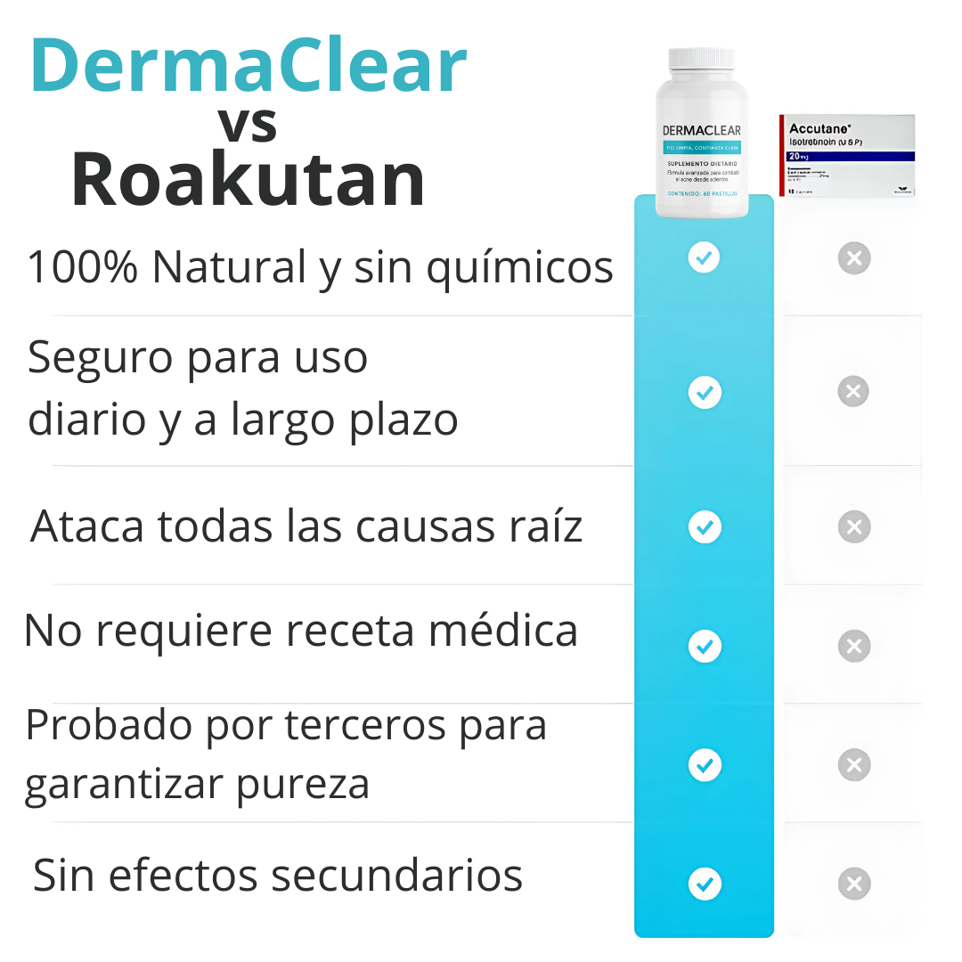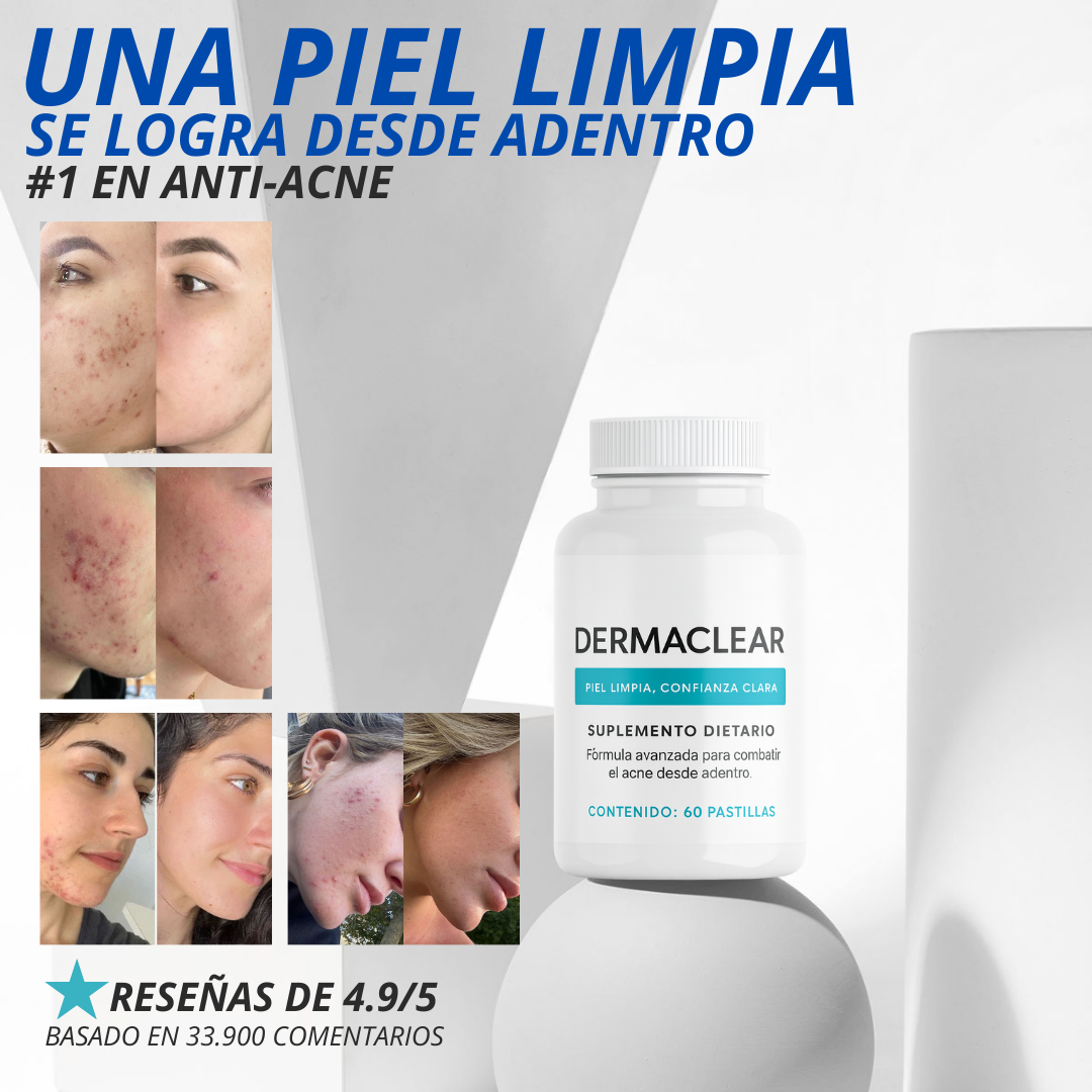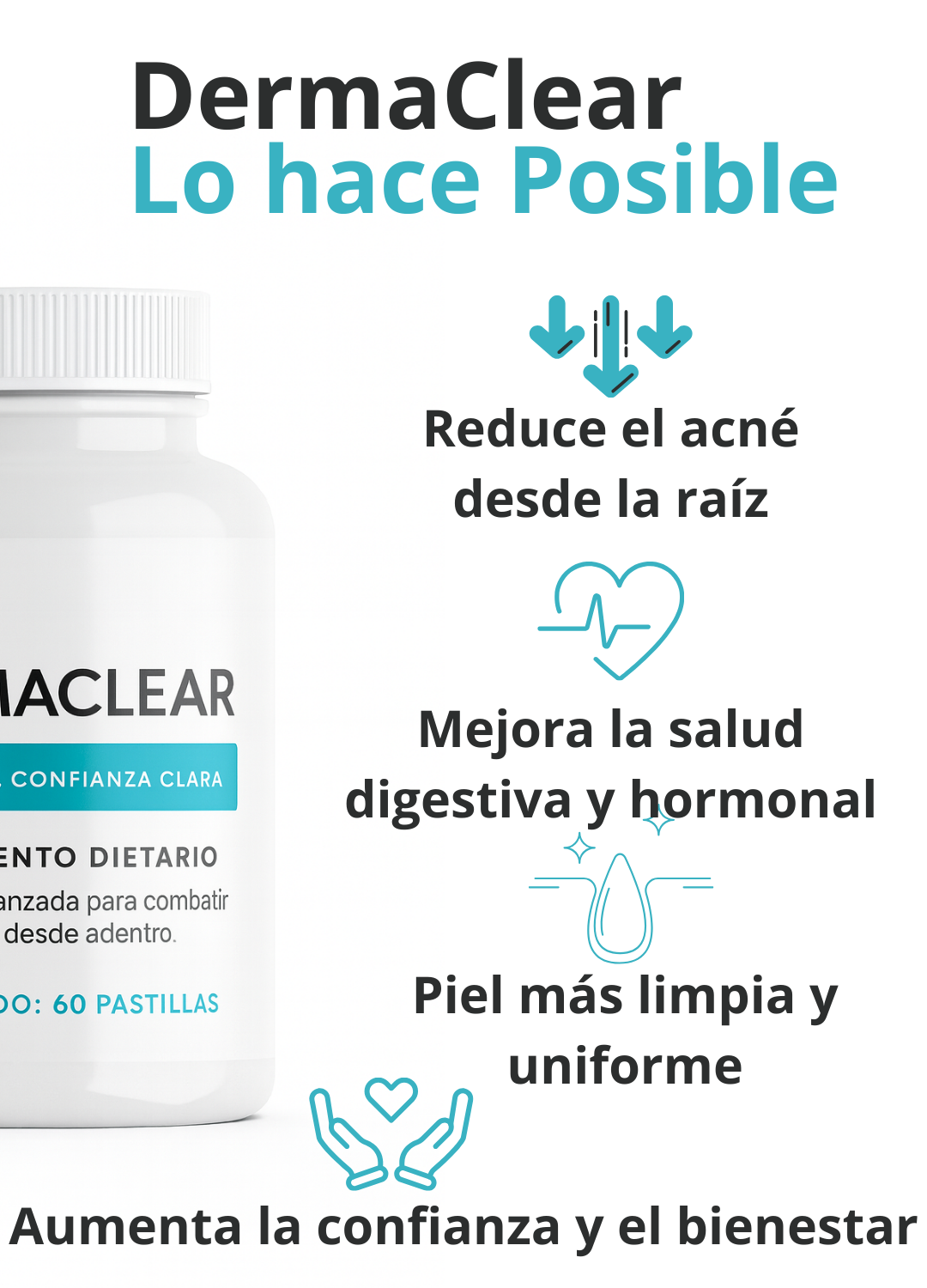 DermaClear es un suplemento natural anti-acné diseñado para tratar el problema desde la raíz y no solo de forma superficial.